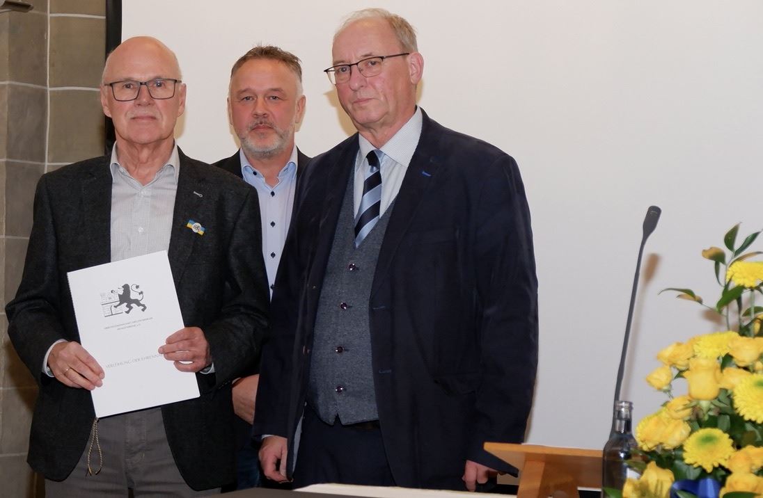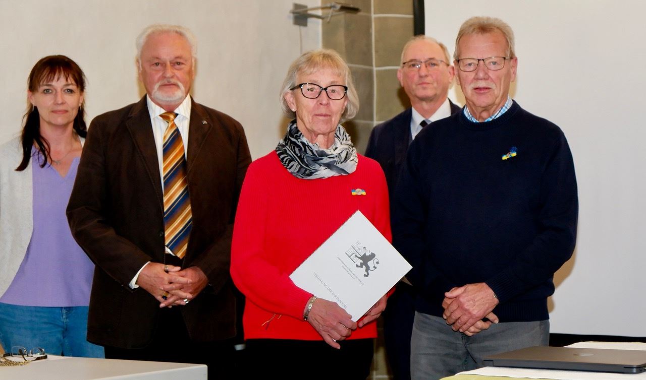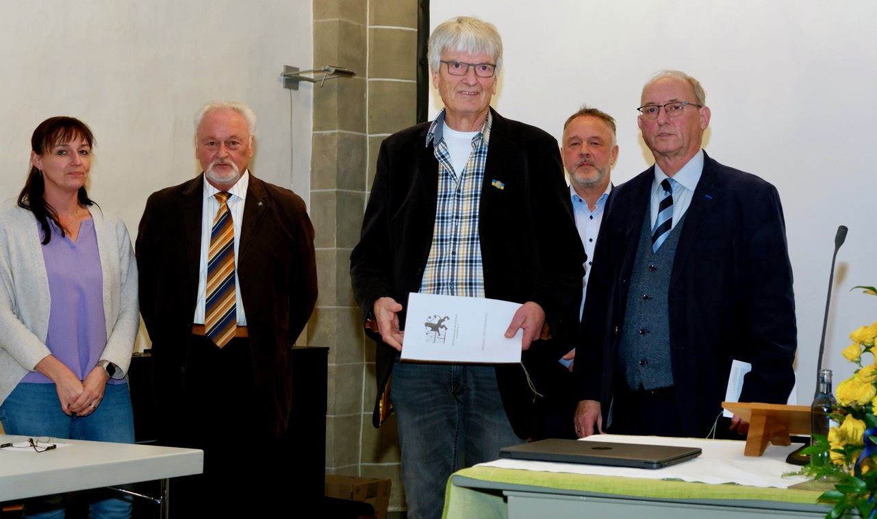 Dem langjährigen ARGE-Vorstandmitglied Heinz Fischbach wurde zugleich die Urkunde für seine Ehrenmitgliedschaft verliehen. Dazu hatte ihn die Mitgliederversammlung gewählt. „Wir sind sehr dankbar, dass er weiter bei uns im Redaktionsstab für Freudenberg im Zeitgeschehen (FiZ) mitarbeitet,“ freute sich Bernd Brandemann in der Laudatio. Verabschiedet mit der Ehrennadel wurde Dieter Tröps, der langjährige Kreisheimatpfleger, der einige Zeit auch im Alten Flecken gewohnt hatte.
