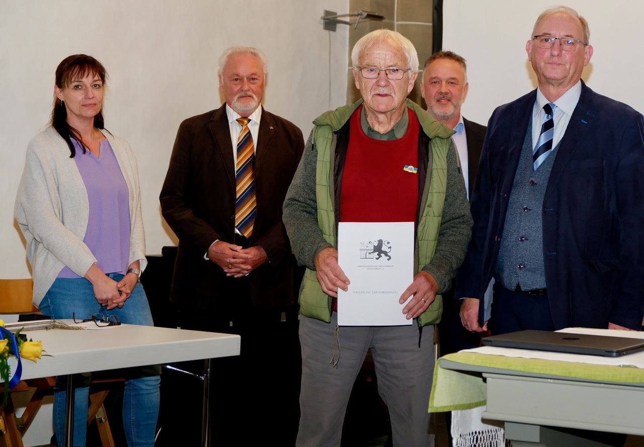 Dem langjährigen ARGE-Vorstandmitglied Heinz Fischbach wurde zugleich die Urkunde für seine Ehrenmitgliedschaft verliehen. Dazu hatte ihn die Mitgliederversammlung gewählt. „Wir sind sehr dankbar, dass er weiter bei uns im Redaktionsstab für Freudenberg im Zeitgeschehen (FiZ) mitarbeitet,“ freute sich Bernd Brandemann in der Laudatio. Verabschiedet mit der Ehrennadel wurde Dieter Tröps, der langjährige Kreisheimatpfleger, der einige Zeit auch im Alten Flecken gewohnt hatte.